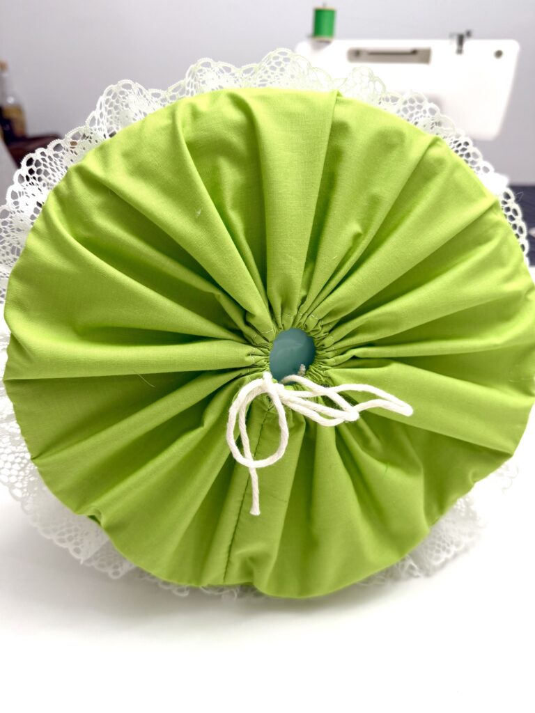 Pull the string tight around the base and tie in a bow.
