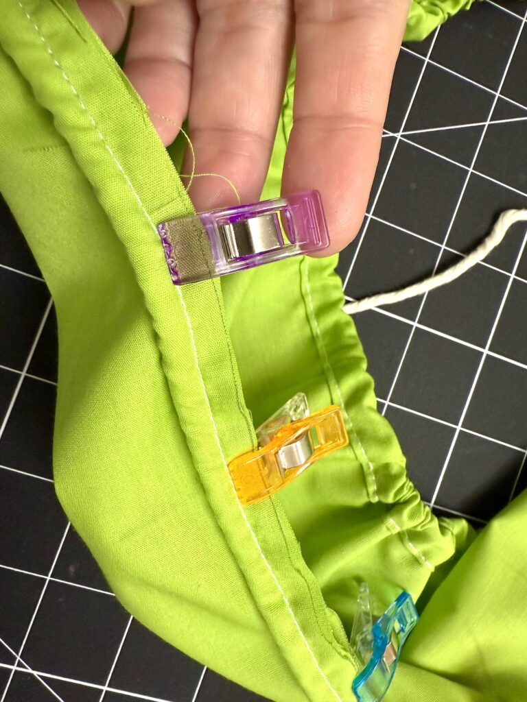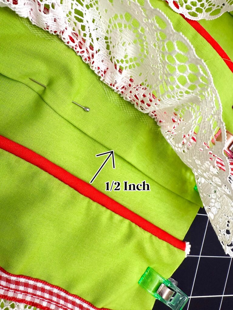 Make sure that the lace is laying flat and isn’t pulled too tightly into the seam allowance (which means it won’t be ruffled when you turn it inside out). Trust me, ask me how I know! LOL