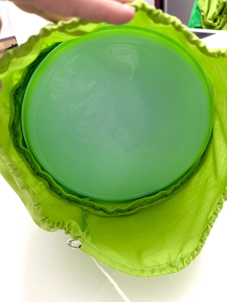 I used an inexpensive plastic plate as the base. You can get these at Walmart for around .50 cents. It wasn’t a perfect fit, but it worked for me.